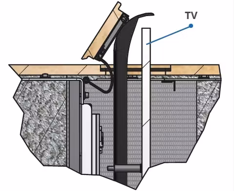 En lösning för att gömma under hissen under golvet eller i tak för att snyggt komma upp ur sin undangömda ställe.