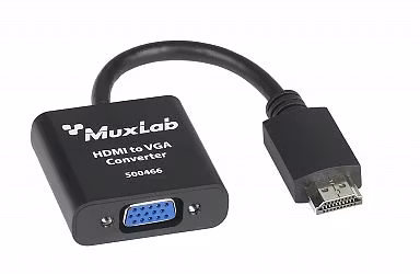 The MuxLab HDMI to VGA Converter allows a single HDMI channel to be converted to analog VGA/RGB.